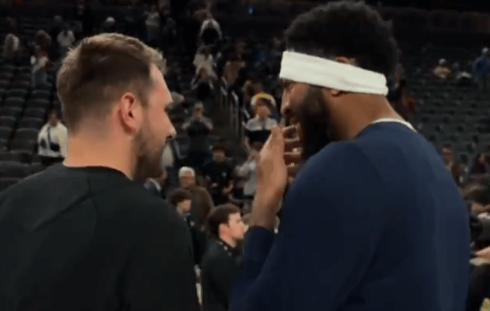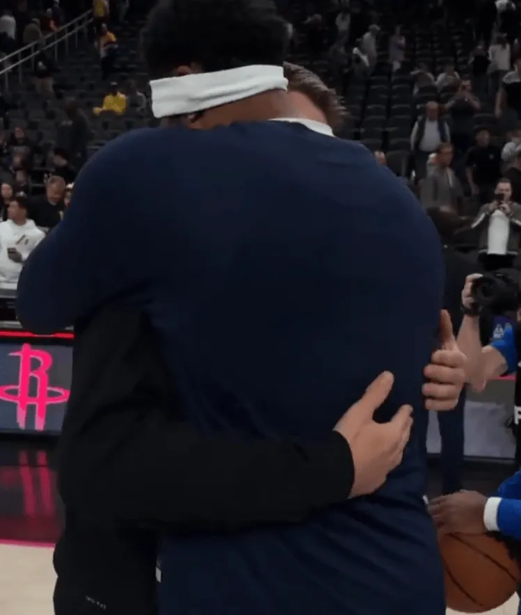 賽后,契奇湖人球員東契奇和獨行俠球員安東尼-戴維斯互相擁抱并寒暄。和安