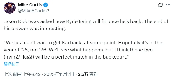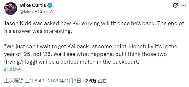 賽前主帥杰森-基德接受了采訪(fǎng),歸和格被問(wèn)到歐文回歸后會(huì )如何融入球隊。弗拉