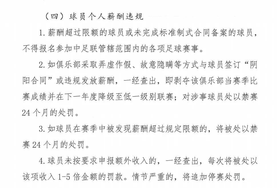 虎撲12月03日訊 近期,中足聯(lián)針對球員個(gè)人薪酬違規行為出臺明確處罰細則,進(jìn)一步規范聯(lián)賽薪酬秩序。