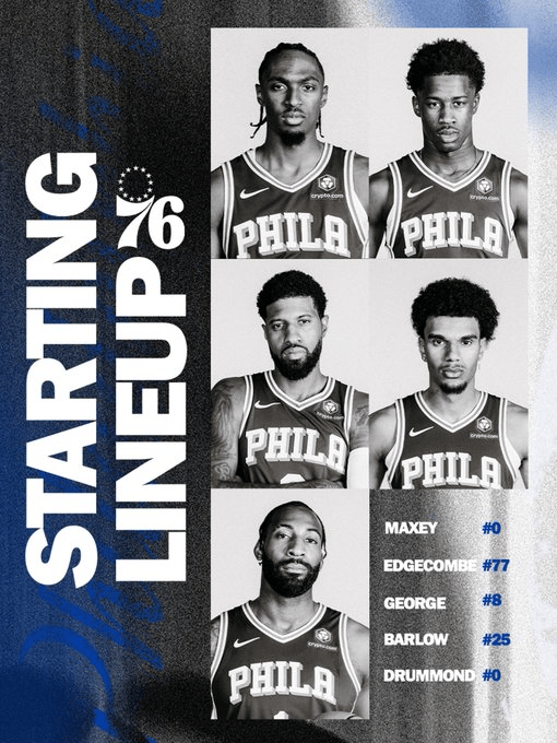 76人首發(fā):馬克西、馬克巴洛、保羅-喬治、德拉蒙德、埃奇庫姆。