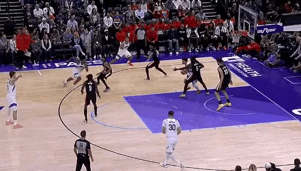 比賽的切接球突第四節,森薩博中路卷切接球突破,破甩甩開(kāi)對手雙手扣籃得分。開(kāi)對