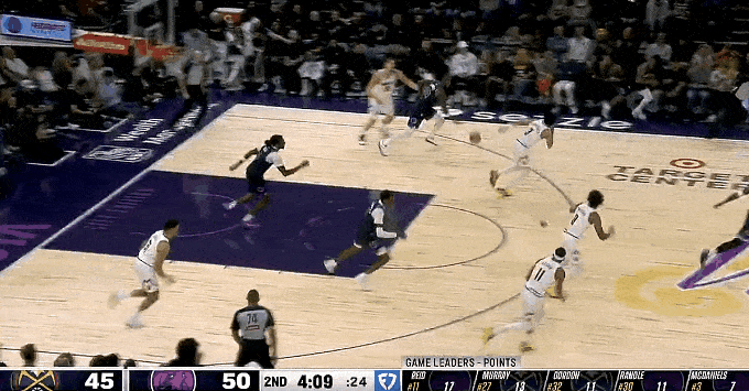 第二節比賽中,反擊愛(ài)德華茲反擊暴扣打進(jìn)本場(chǎng)首球,暴扣本場(chǎng)目前6中1得到7分,打進(jìn)森林狼再轟12-2打停掘金。首球森林