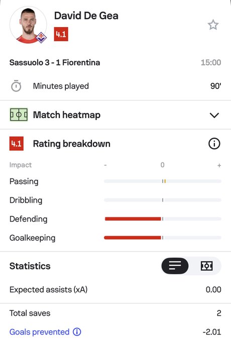 此前他的職業(yè)最低單場(chǎng)最低評分是4.6,來(lái)自于2023年利物浦7–0戰勝曼聯(lián)的評分那場(chǎng)比賽。