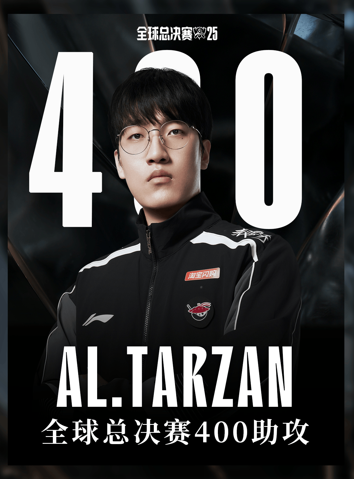 虎撲10月17日訊 在剛剛AL對戰CFO的第三局比賽,Tarzan達成全球總決賽400助攻成就: