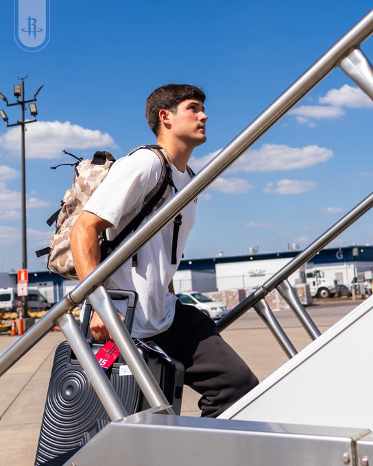 虎撲10月14日訊 火箭官方更新X,曬出一組球員們的登機杜蘭當斯等人登機照與球迷分享。
