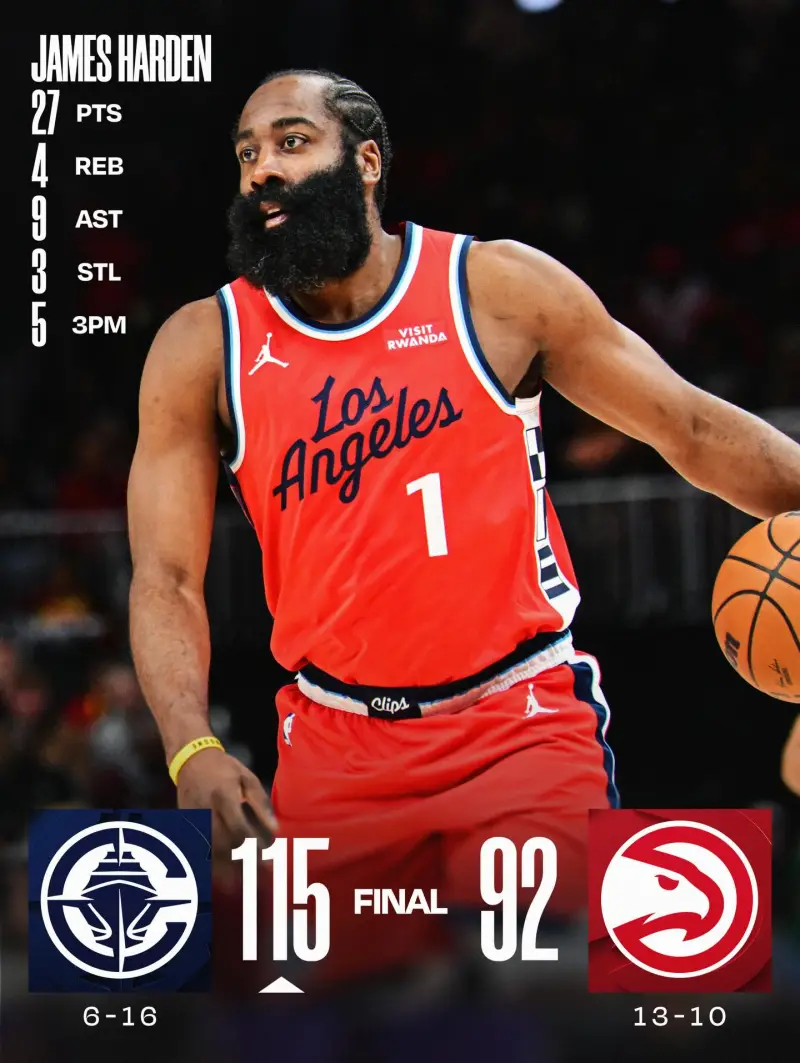 其中,流言里哈拉格默里投中10記三分爆砍52分助掘金取勝,哈登27分4籃板9助攻幫助快船終結6連敗。
