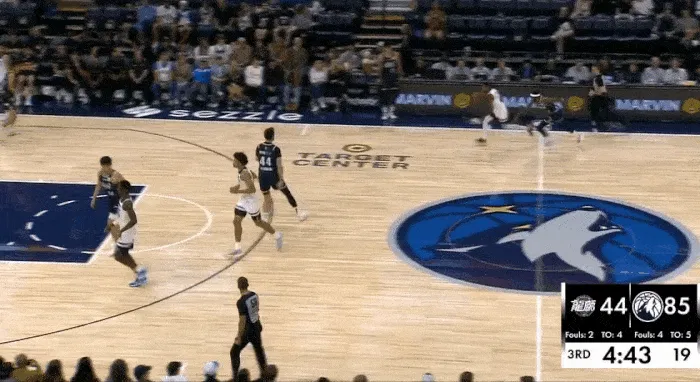 迪林厄姆轉身加速突破輕松上籃打進(jìn),森林狼領(lǐng)先廣州43分