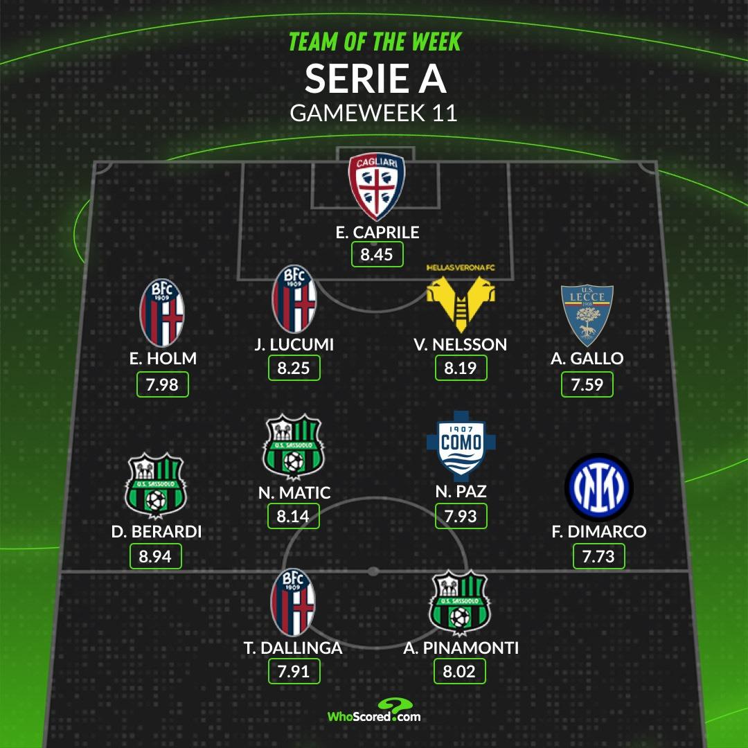 中場(chǎng):貝拉爾迪(薩索洛)、馬蒂奇(薩索洛)、帕斯(科莫)、迪馬爾科(國際米蘭)