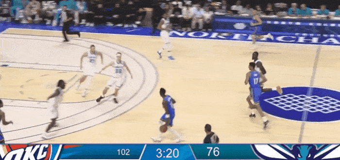虎撲10月06日訊 NBA季前賽,雷霆和黃蜂的角分比賽正在進(jìn)行中。