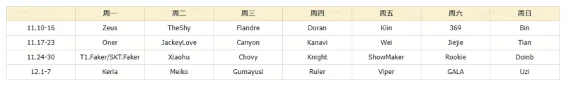 3. 參與評選的選手基于成績(jì)(保底需擁有國際賽事冠軍)、知名度、筒心位置等因素,英雄優(yōu)先選擇近些年活躍的招牌中Z招牌選手,大致按【上野中輔下】的評選順序進(jìn)行但較為自由,具體排期如下: