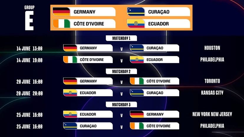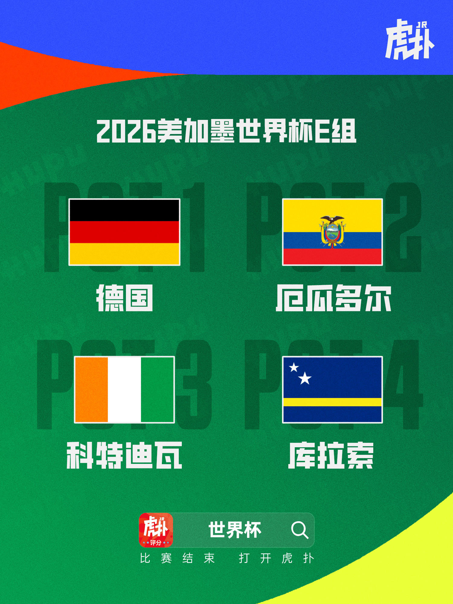 虎撲12月07日訊 2026年美加墨世界杯全部賽程公布,E組賽程如下(北京時(shí)間)