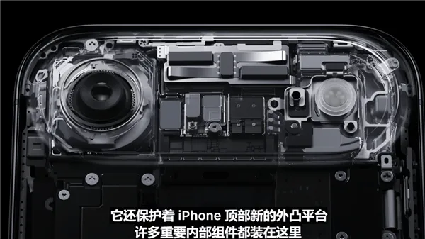 手機主板集成在機身頂部凸起的Deco內,搭載A19 Pro芯片,配備蘋(píng)果全新C1X調制解調器,速度比C1速度快2倍,比iPhone 16 Pro的高通基帶芯片速度還快,能耗卻降低了30%,是最強大的蘋(píng)果基帶芯片。