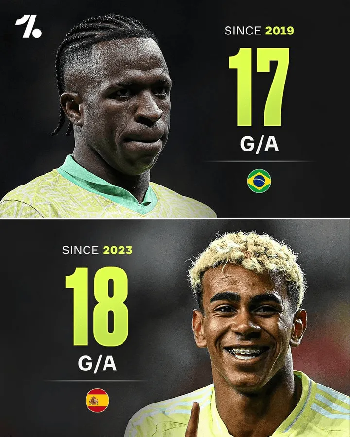 是板亞維尼修斯在巴西隊的表現低于預期,還是隊首但參多亞馬爾在西班牙隊的表現過(guò)于出色?
