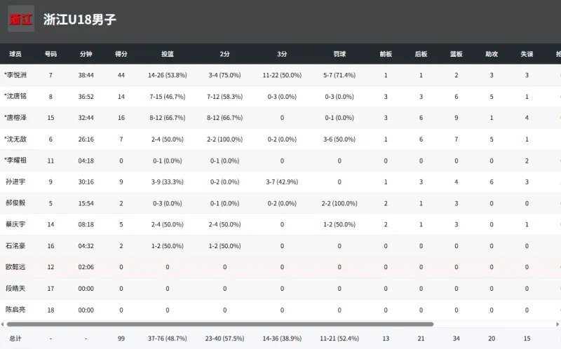 本場(chǎng)比賽,洲全戰分鐘分中空浙江隊球員李?lèi)傊奕珗?chǎng)出戰39分鐘,場(chǎng)出投籃26中14,砍分其中三分22中11,流言李?lèi)偭P球7中5,江隊空砍44分2籃板3助攻。洲全戰分鐘分中空