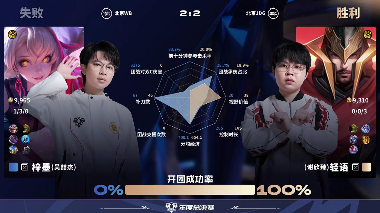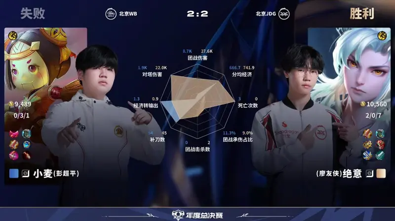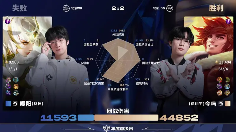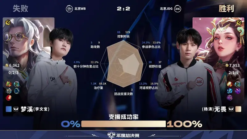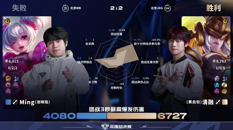 來(lái)源:虎撲電競虎撲10月06日訊 JDG/WB第4局數據對比:無(wú)畏楊玉環(huán)全包圍夢(mèng)溪魯班大師。