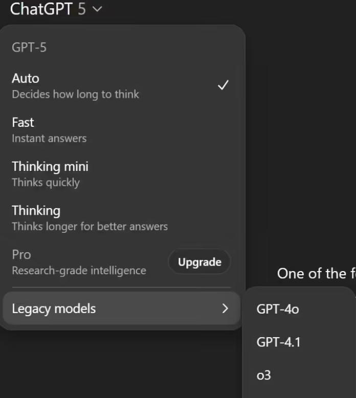 GPT-5 的自動(dòng)模式(Auto Mode)會(huì )根據系統判斷是否需要使用推理模型來(lái)提供更優(yōu)答案,僅在系統認為推理模型更能勝任時(shí)才會(huì )觸發(fā)切換。