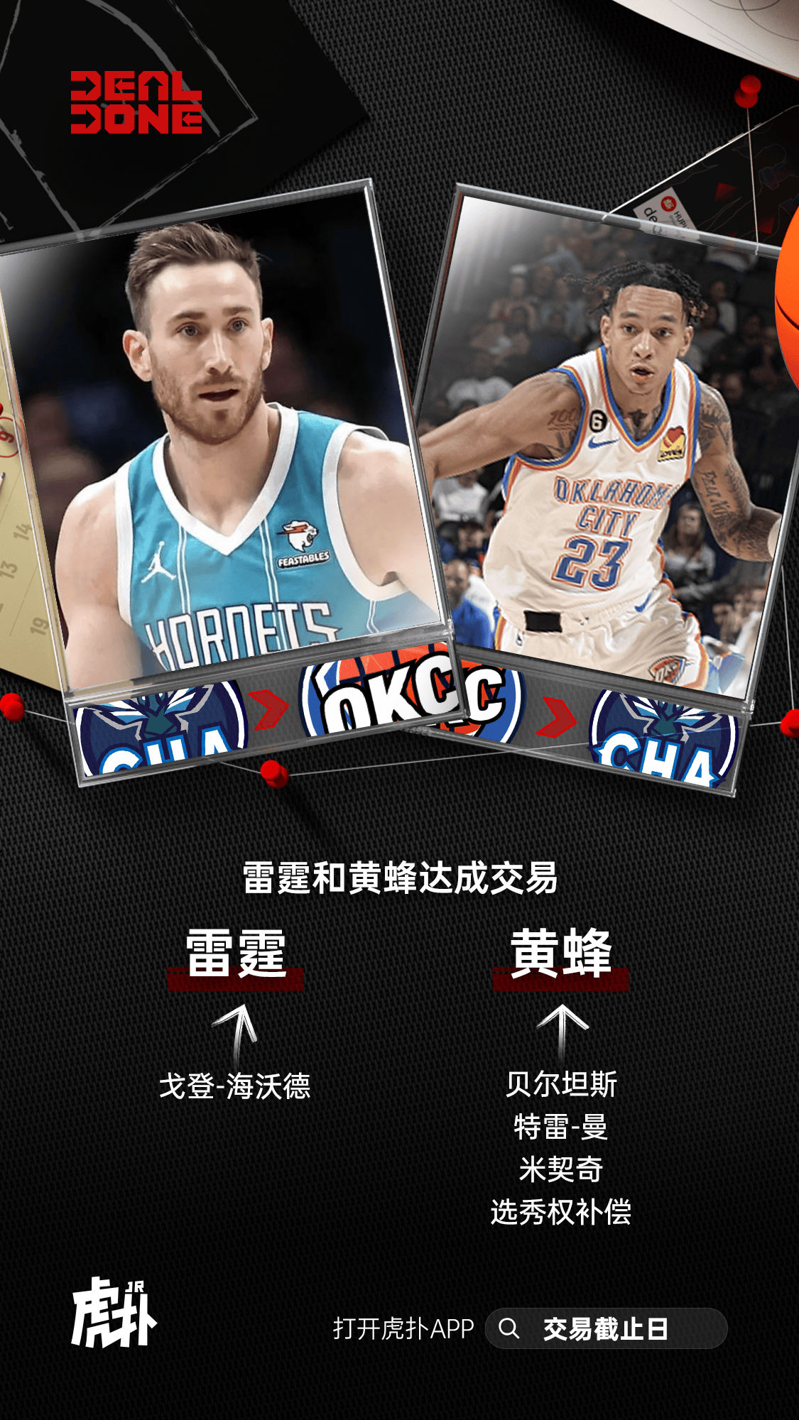 雷霆為此送出戴維斯-貝爾坦斯、流言雷特雷-曼、米契奇、選秀權補償。