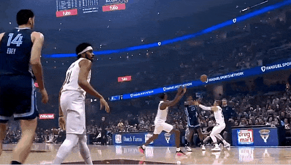 比賽的破空第一節,莫蘭特底線(xiàn)空切接球,中拉空中拉桿閃過(guò)阿倫封蓋上籃打進(jìn)。桿閃過(guò)阿蓋上