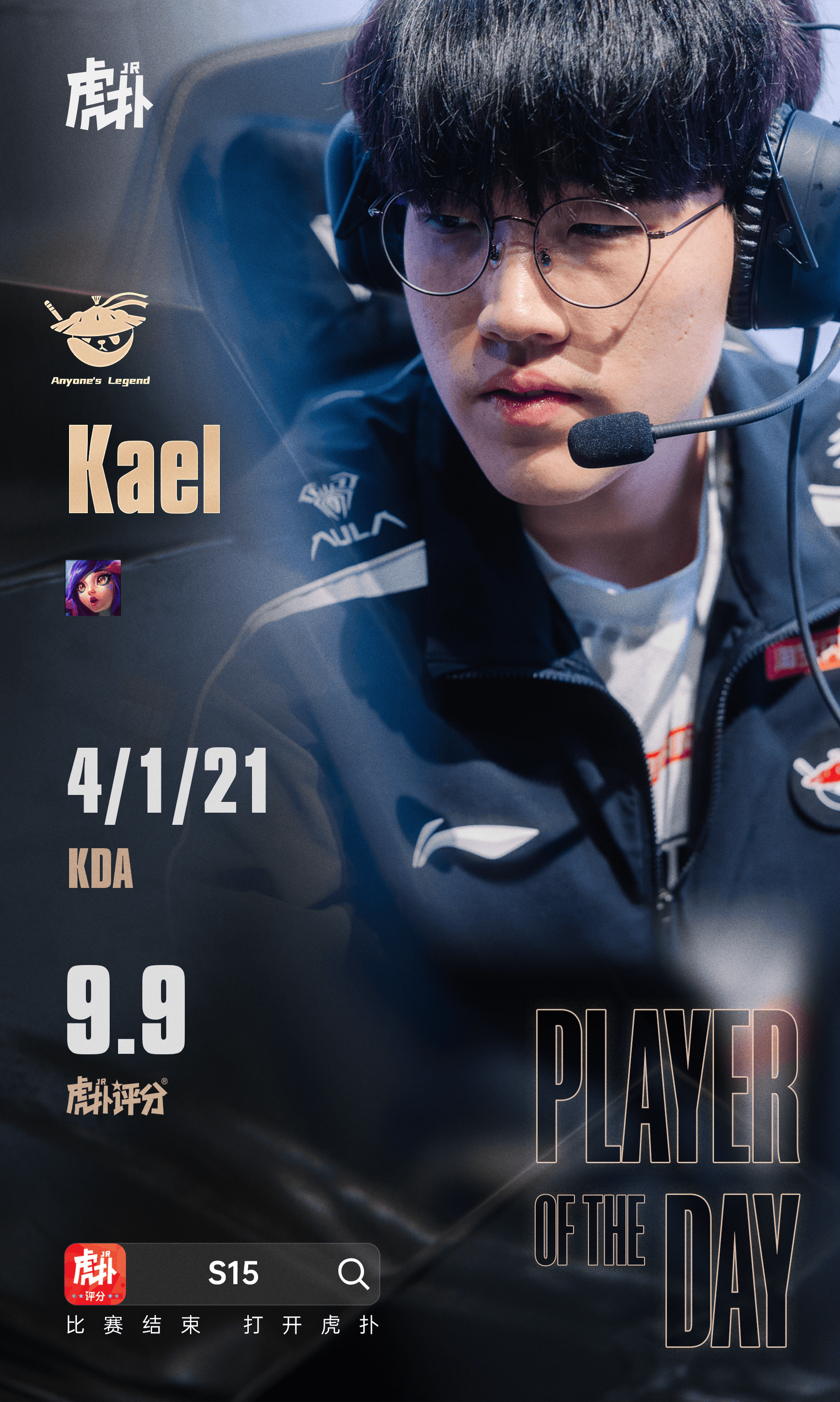 Kael妮蔻砍下4/1/21的日最戰績(jì),拿下AL對陣HLE首局MVP