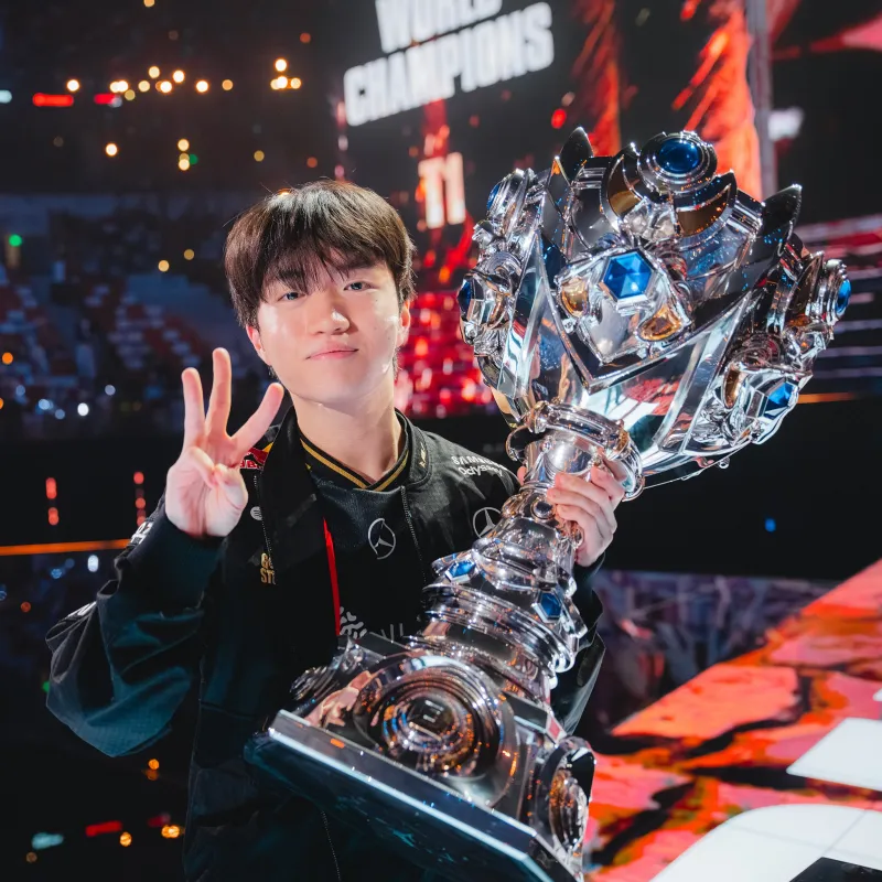 虎撲11月10日訊 LOL官推曬Keria捧杯照并配文:輔助位的GOAT