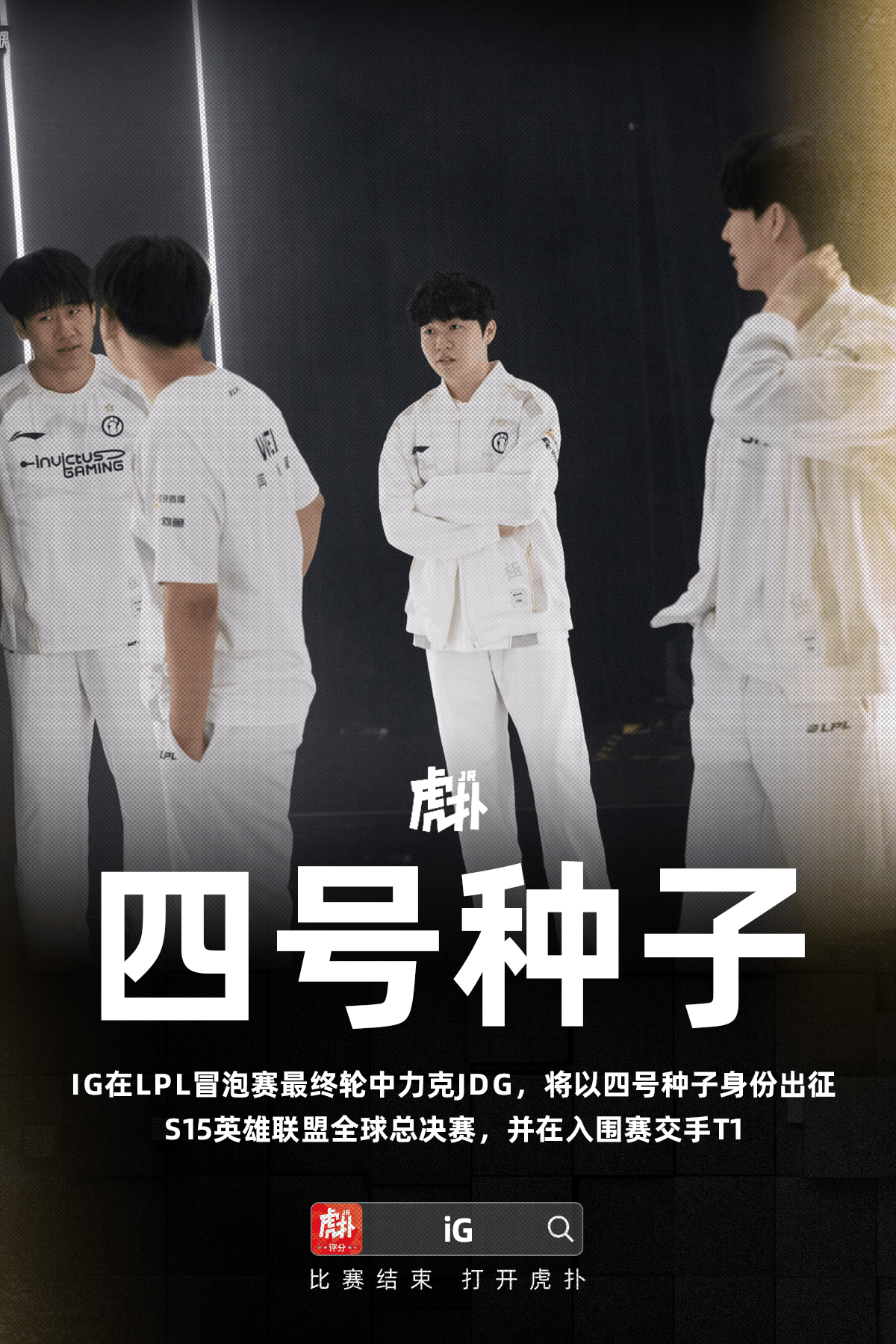虎撲09月27日訊 2025LPL賽區全球總決賽資格賽上IG以3-1戰勝JDG后,iG將作為L(cháng)PL賽區四號種子出征2025英雄聯(lián)盟全球總決賽。戰勝總決并且入圍賽將對戰LCK賽區四號種子T1戰隊。后號種