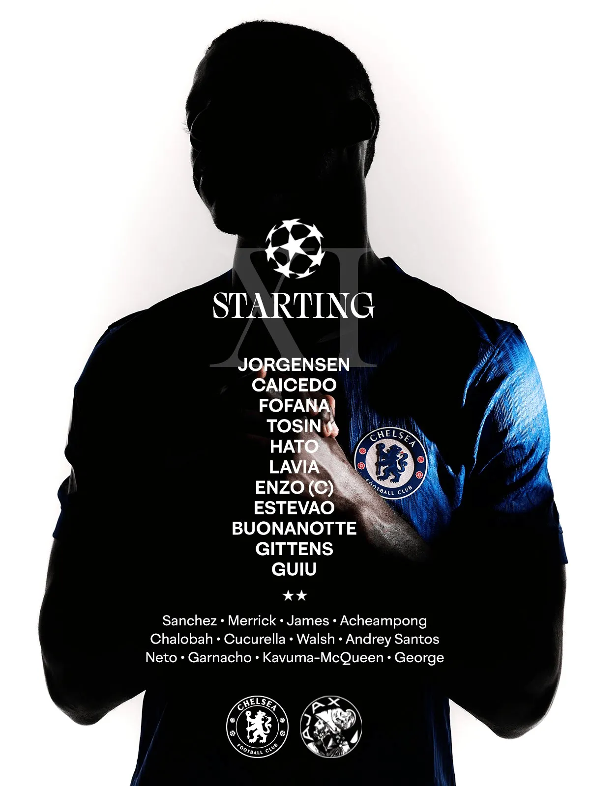 來(lái)源:X虎撲10月22日訊 歐冠聯(lián)賽階段第3輪中,切爾西坐鎮主場(chǎng)迎戰阿賈克斯。大戰一觸即發(fā),切爾西率先公布了首發(fā)名單。