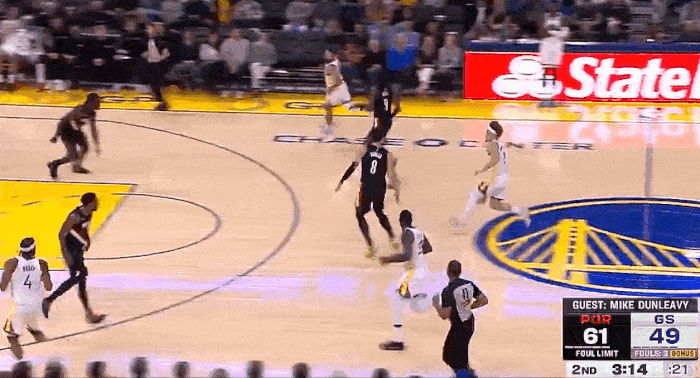第二節比賽,分助格林突分助攻庫里,攻庫后者接球反籃打進(jìn)已得11分。球反