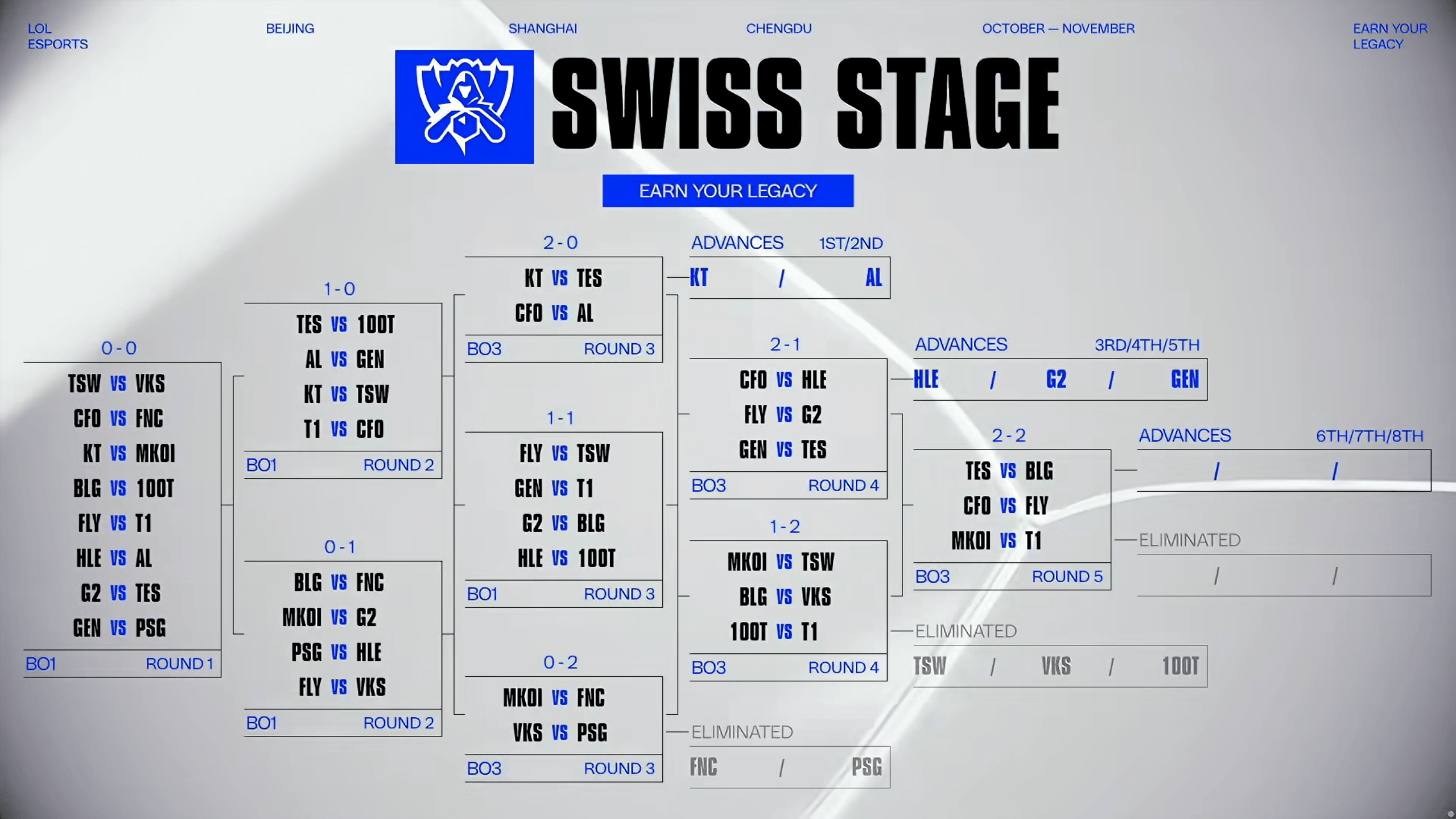虎撲10月24日訊 2025LOL全球總決賽瑞士輪第五輪結果確定,具體如下: