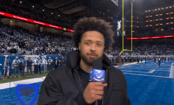 虎撲12月05日訊 活塞球星凱德-坎寧安來(lái)到同城NFL球隊底特律雄獅的主場(chǎng)看球,對手是場(chǎng)但持對達拉斯牛仔。