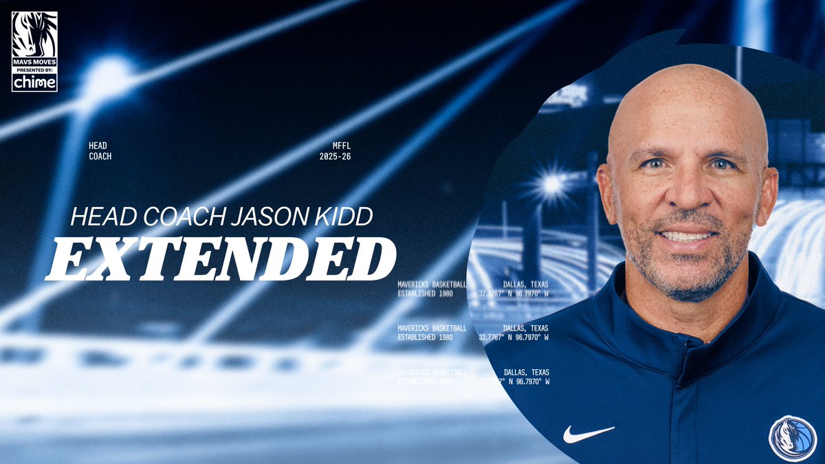 虎撲10月15日訊 獨行俠官方更新X,曬出一張獨行俠主教練杰森-基德的行俠續約照片與球迷分享。