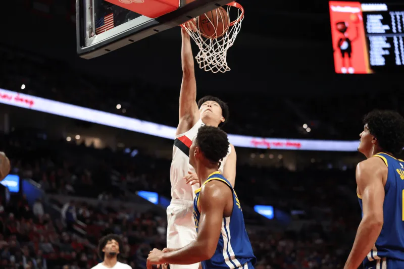 開(kāi)拓者官方更新社媒,官方曬出楊瀚森本場(chǎng)比賽精彩扣籃瞬間。曬楊瞬間