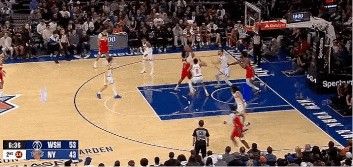 NBA季前賽,尼克斯對陣奇才的奮力防下比賽正在進(jìn)行中。