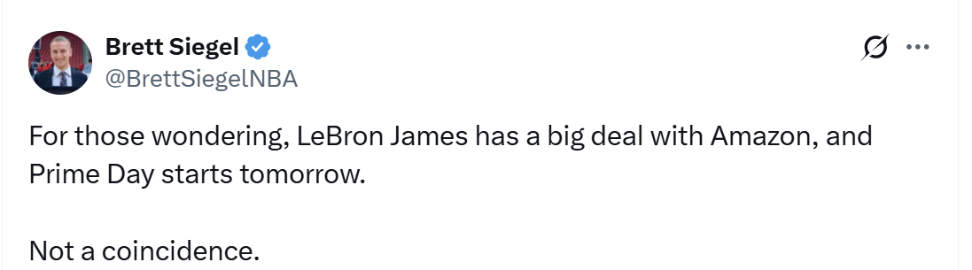 給好奇的合作朋友們說(shuō)明一下:勒布朗-詹姆斯與亞馬遜簽有重大合作協(xié)議,而會(huì )員日就在明天啟幕——這絕非巧合。開(kāi)啟