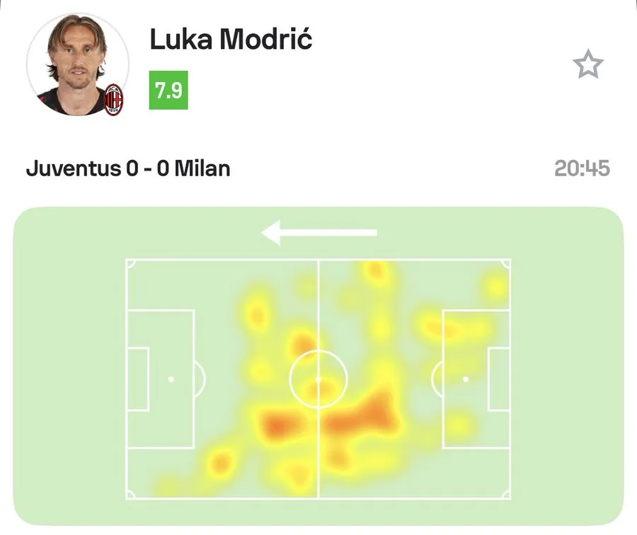 Sofascore數據統計莫德里奇本場(chǎng)多項數據排名全場(chǎng)前列: