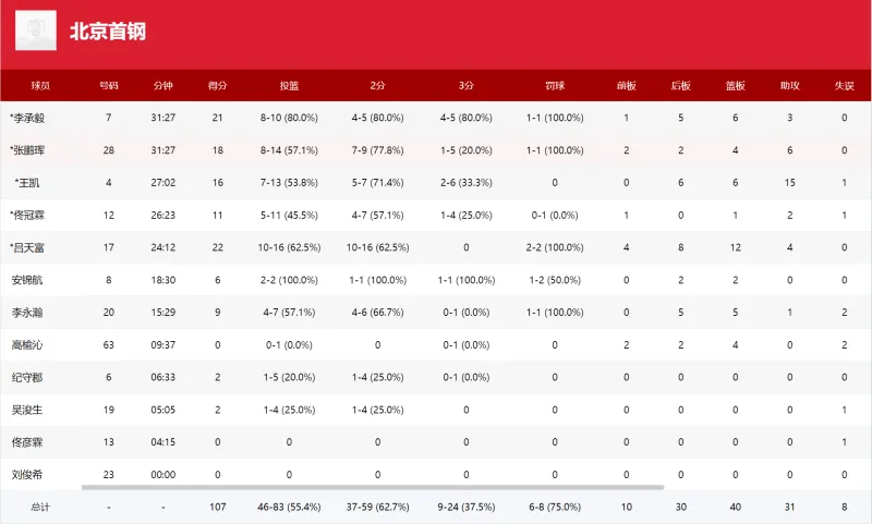 北京U21:呂天富22分12板4助,賽呂李承毅21分6板3助,天富天津張鵬琿18分4板6助。分板