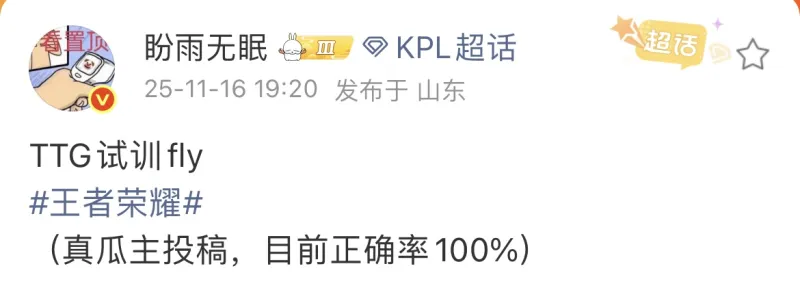 [JR熱議]瓜主爆料:TTG試訓Fly,熱議大家覺(jué)得兩者適配嗎?由斷線(xiàn)流老莊周 發(fā)表在王者榮耀 https://bbs.hupu.com/kog
