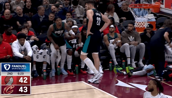 NBA常規賽,開(kāi)拓者對陣騎士的板克不適被換比賽正在進(jìn)行中。