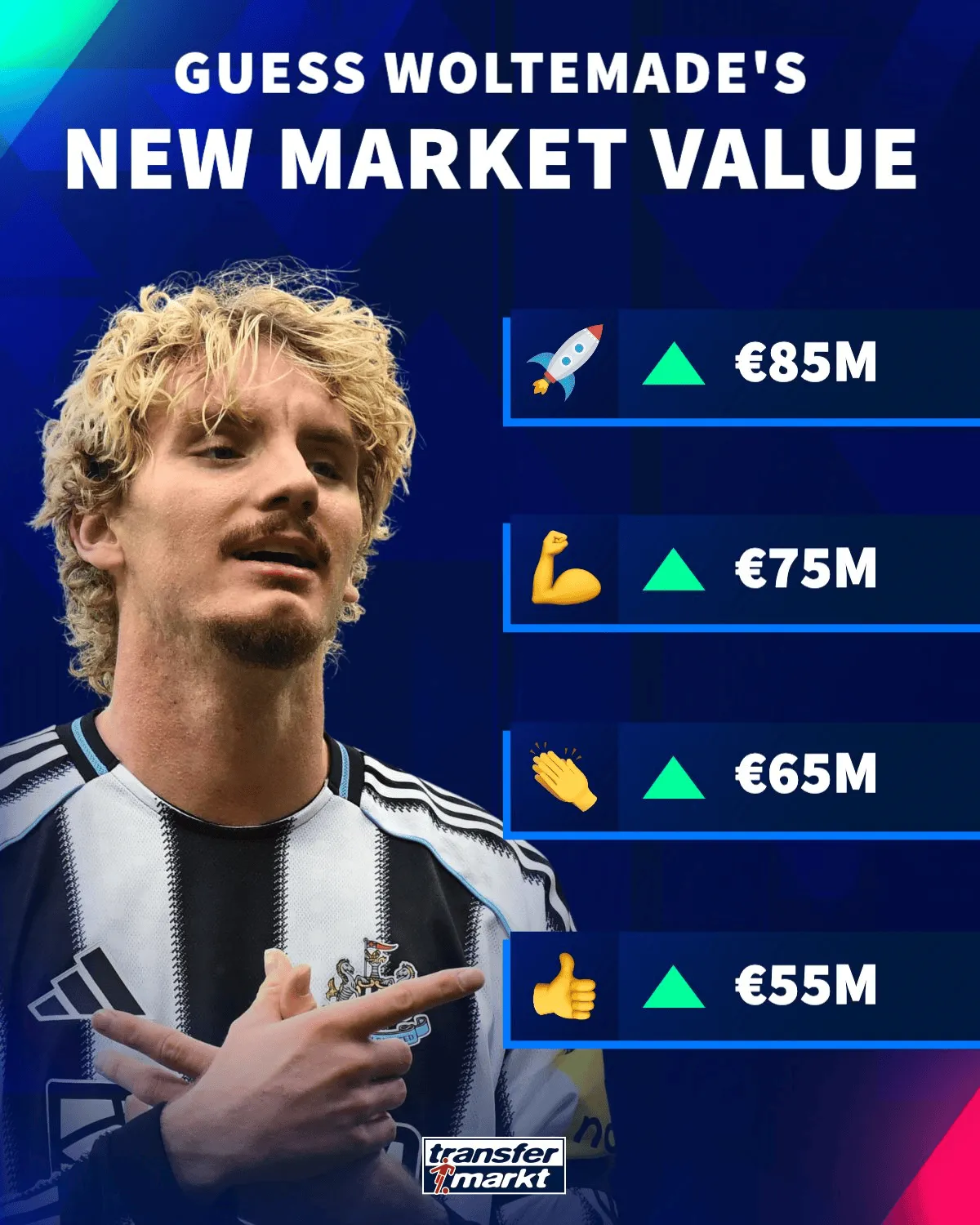 沃爾特馬德目前德轉身價(jià)為3000萬(wàn)歐,他的身價(jià)最高可能漲至8500萬(wàn)歐,而最低也會(huì )漲至5500萬(wàn)歐。