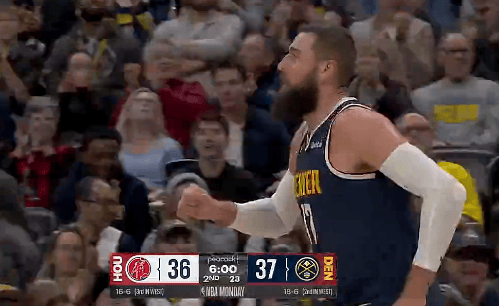 NBA常規賽,掘金主場(chǎng)迎戰火箭的后仰比賽正在進(jìn)行中。