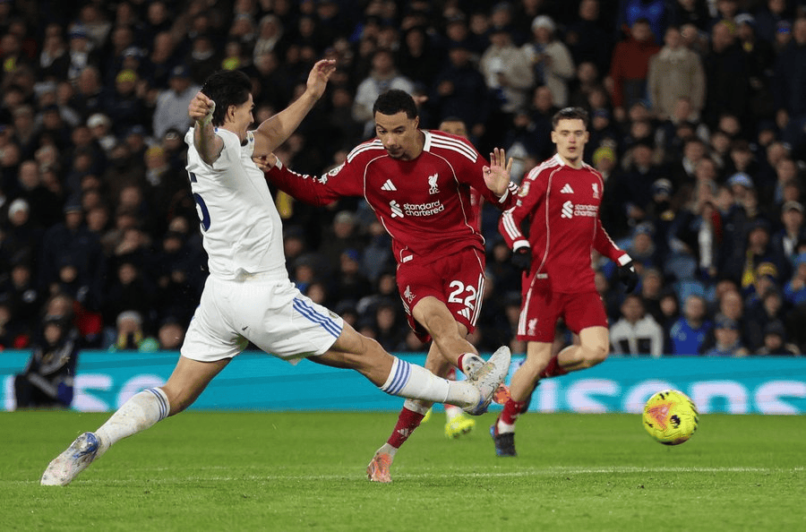 虎撲12月07日訊 英超第15輪,利茲聯(lián)主場(chǎng)迎戰利物浦,球埃前場(chǎng)比賽第50分鐘,基蒂僅球?;倏嗽傧乱怀?,克首利物浦2-0領(lǐng)先。浦雙