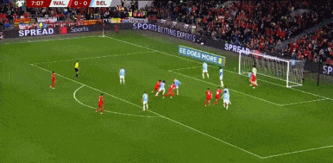 威爾士左側角球,羅登無(wú)人盯防輕松頂進(jìn),威爾士1